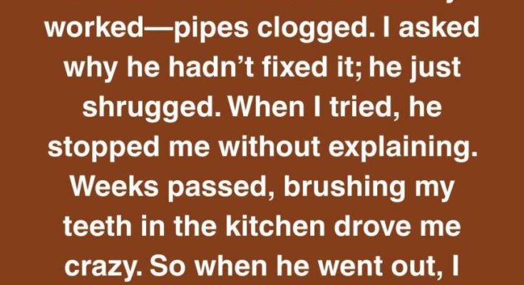 Every morning brushing my teeth in the kitchen sink tested my patience. One afternoon, while he was out, I finally decided to handle it myself. I grabbed tools, took the pipes apart—and froze when I saw what was inside.