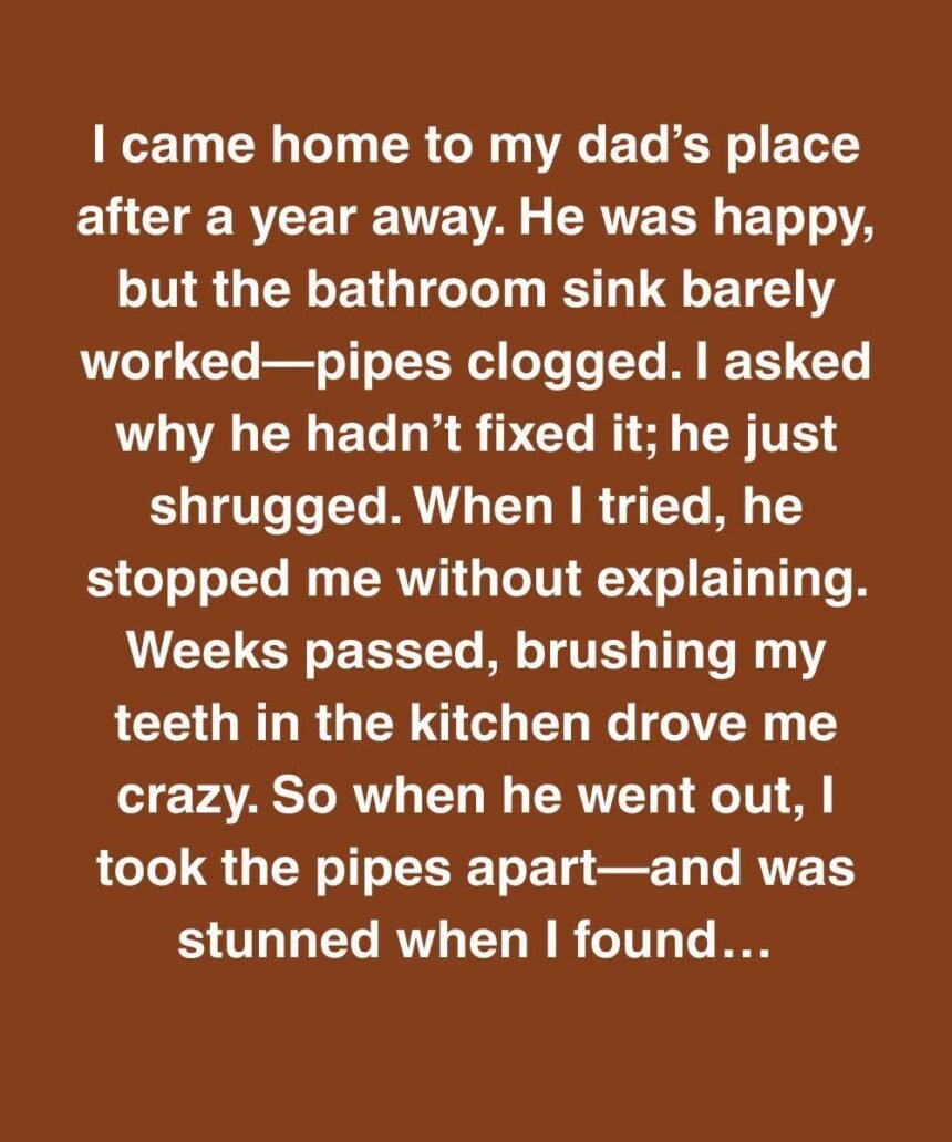 I came home to my dad’s place after a year away. He was happy, but the bathroom sink barely worked—pipes clogged. I asked why he hadn’t fixed it; he just shrugged like it wasn’t a big deal.