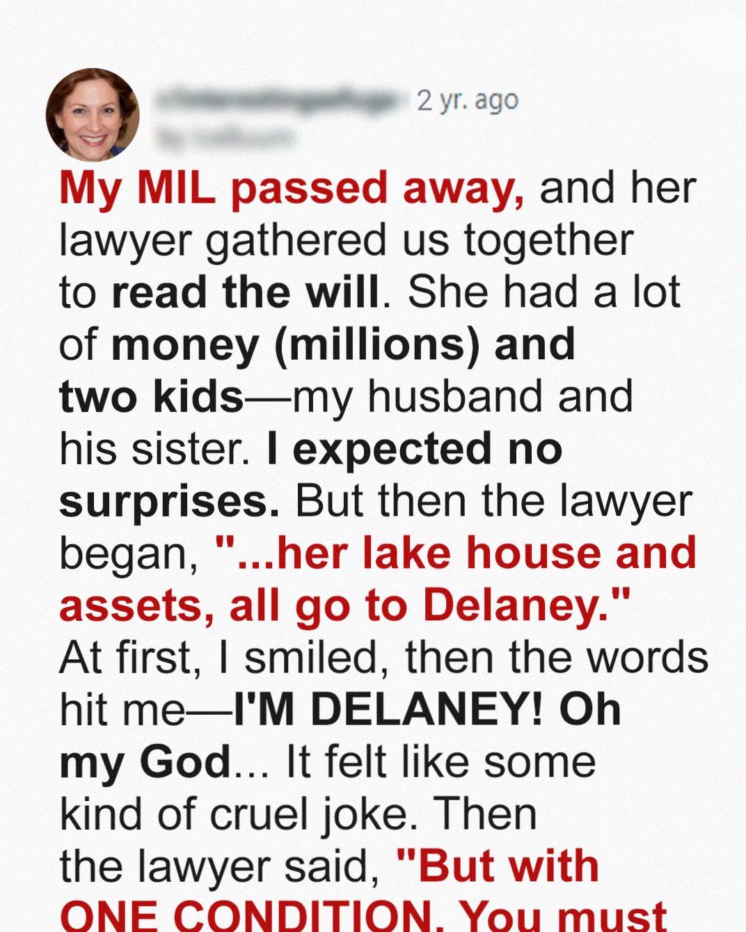 When my mother-in-law Gloria passed, I never expected to inherit anything we were cordial at best. But at the reading of her will, everything changed. She left me everything: her homes, her savings, her legacy. The catch? I had to stay married to my emotionally absent husband, Caleb, and live under the same roof as his bitter sister, Tessa, for 90 days. It wasn’t a gift it was a trap. And suddenly, I was living with two people who resented me, fueled by greed and unresolved wounds.