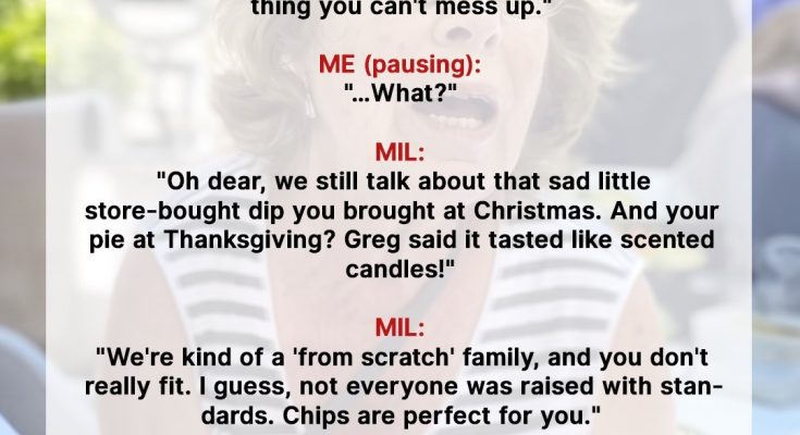 At the BBQ, the moment I unveiled my chip cones, the crowd went wild. Guests swarmed the tray, asking for the recipe and snapping photos. I played it cool, popping one into my mouth while my MIL’s smile stretched thinner by the minute. When someone complimented her “famous” berry tart, I casually pulled out the receipts I’d found in her trash store-bought, both of them. The tart and the cobbler. Her face turned a glorious shade of red.