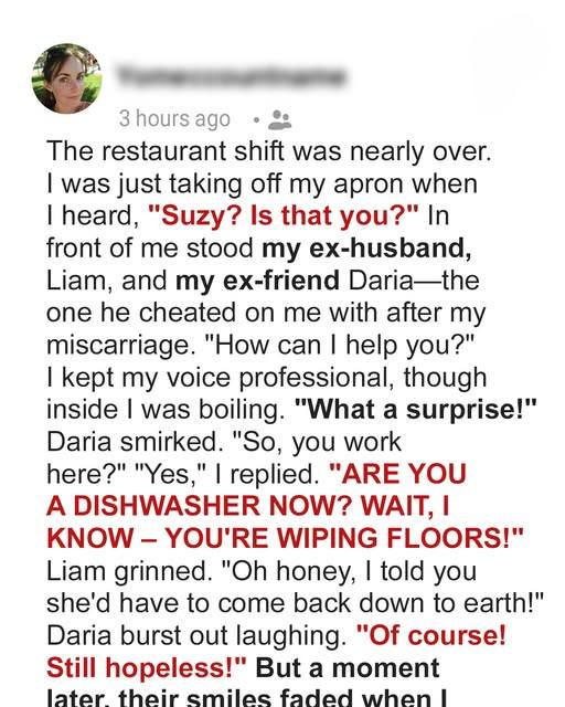 I felt a tap on my shoulder. I froze. Slowly, I turned. It was them. Standing right there. His new partner had a glass of champagne in her hand, her eyes sparkling. My ex was smiling, but it wasn’t his usual warm smile. It was something… sharper.