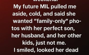 Our wedding is a month away and everything was fine until the dress-fitting weekend. My future MIL pulled me aside, cold, and said she wanted “family-only” photos with her perfect …